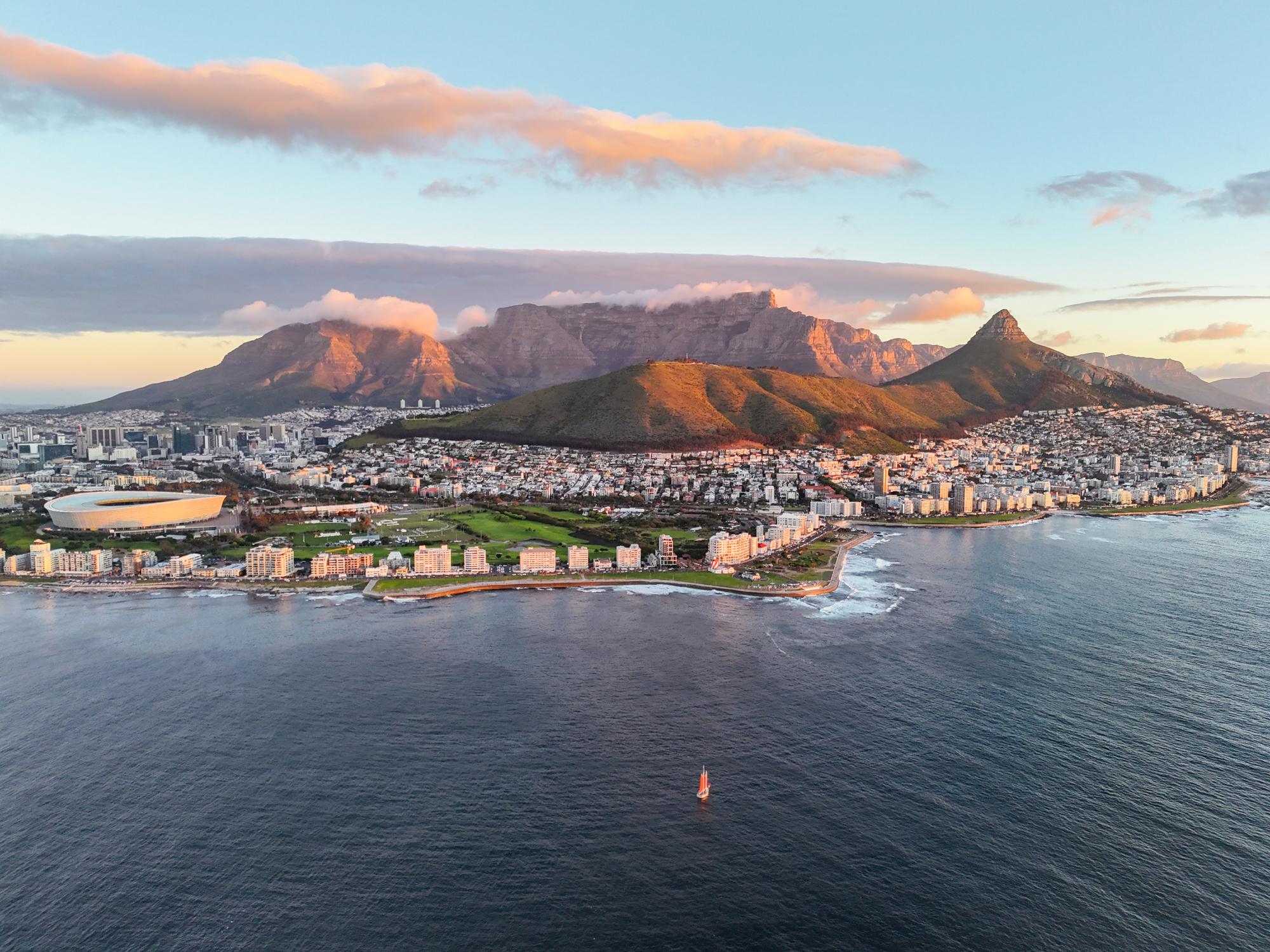 桌山国家公园位于开普敦市附近的开普半岛,因气候条件形成独特的“桌布云”覆盖其山顶,是著名的自然景观。开普敦市是南非立法首都,南非议会位于该市。当地以壮丽自然景观和多元文化闻名,是世界著名旅游城市。