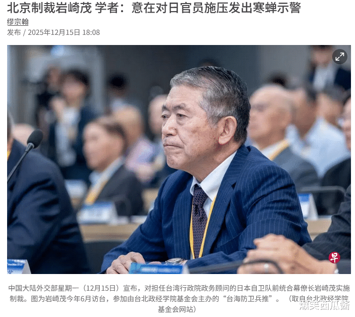 岩崎茂出任台湾“政务顾问”是在2025年3月,而制裁令直到12月才发出。中间这九个月的“静默期”,难道是有关部门反应迟钝吗?